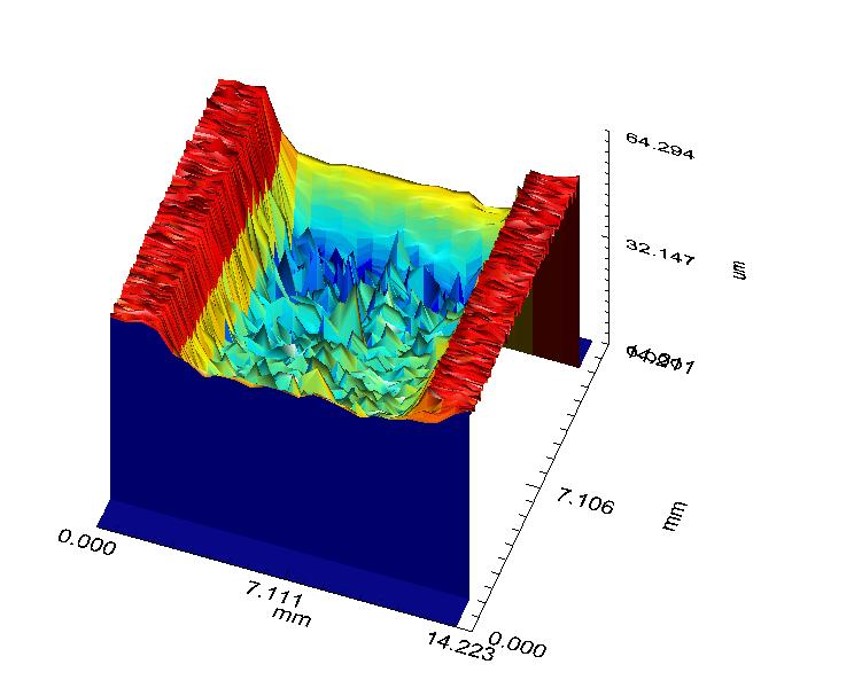 Abrasive melts primarily result in uniform material removal. Corrosive melts usually cause an irregular surface structure. This can be visualised very well using confocal chromatic measurement technology (Fig. 3). For a more detailed metallographic analysis of the wear pattern, SEM/EDX electron microscopy can be used.